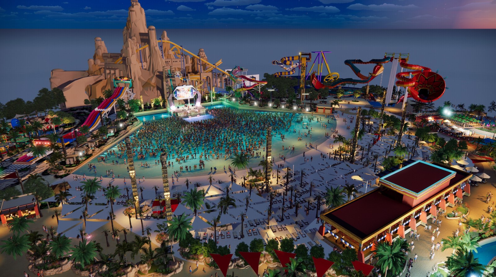 北京玛雅海滩水公园,是华侨城欢乐谷公司布局运营的第12座水上乐园,致力于打造成一个集主题文化、水上游乐、节庆狂欢、缤纷演艺于一体的城市娱乐新主场。联点集团参与该项目的深化设计及主题包装。紧扣“水公园的灵魂是水”这一核心,以“有颜有料、有品有趣”为设计理念,优秀的空间规划,让园区充分释放与游客的互动性,实现娱乐无死角的非凡体验。综合运用集约化用地、立体化造园、借景式构图、双园化互娱等手法,创新建设而成。玛雅海滩全新开放恰逢北京欢乐谷十八周年,以“创意、科技、节约、环保”的新动能,催生“刺激、潮流、浪漫、真诚”的新优势,让“上天下水”的水陆狂欢超级加倍!